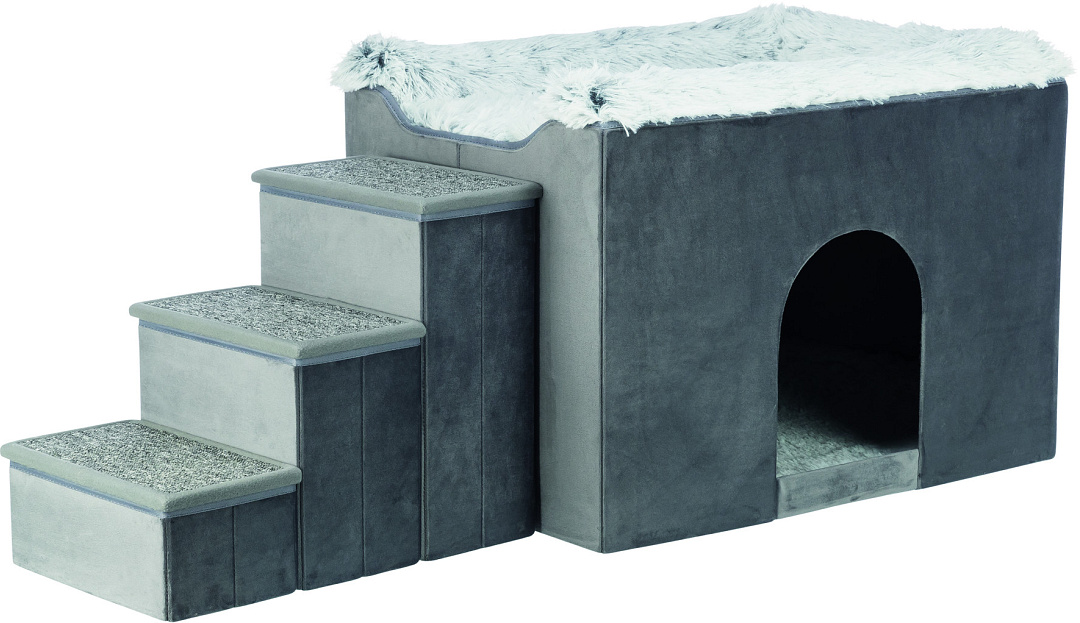 TRIXIE Schuilplaats Harvey is een slaap- en schuilplaats met trap. Ideaal voor die huisdieren die niet meer zo makkelijk ergens opspringen. Door het gebruik van de trap belasten ze hun achterste pootjes minder en kunnen ze makkelijker het ligplateau bereiken.