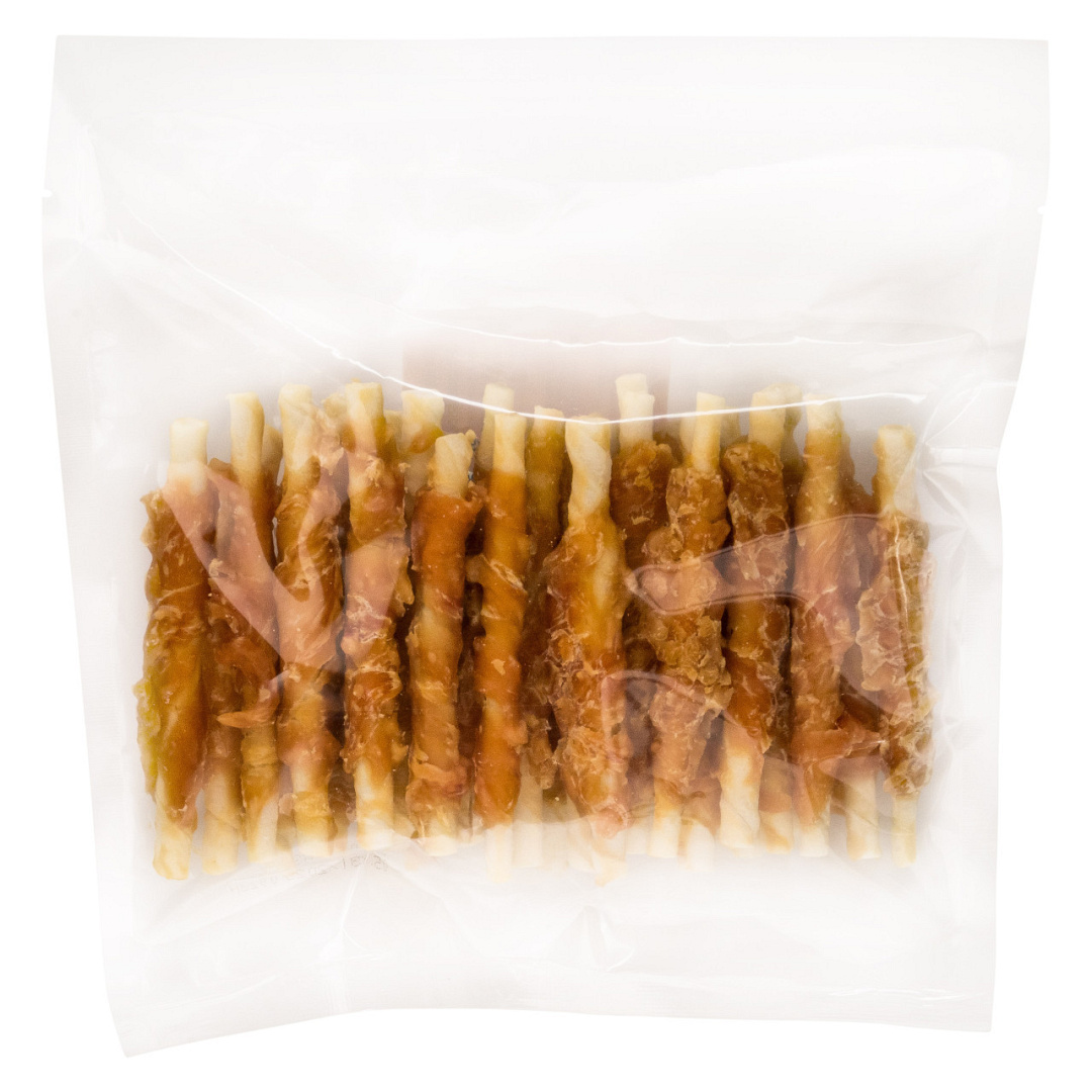 Kauwstaafjes met kip.