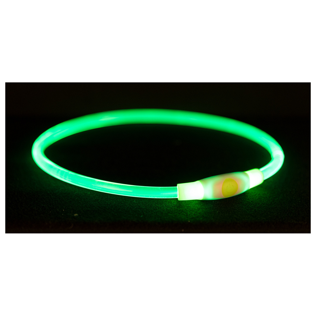 Lichtgevende halsband om je hond veilig in het donker uit te laten. Kan knipperen of continu licht geven.
