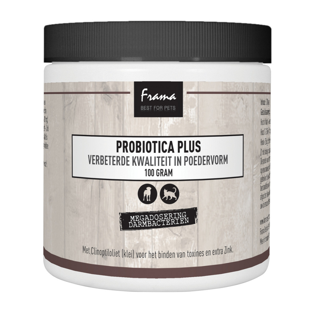 Frama Best For Pets Probiotica Plus Poeder ondersteunt een goede darmwerking met goede darmbacteriën. Goede darmbacteriën zorgen voor een juiste zuurgraad in de darmen en dragen bij aan een goede voedselvertering door de productie van enzymen. Door toediening van hoog gedoseerd goede darmbacteriën worden slechte bacteriën tegen gewerkt. Hierdoor zullen de darmcellen in topconditie komen. Voedingsstoffen zullen beter opgenomen worden en de algemene conditie zal verbeteren.