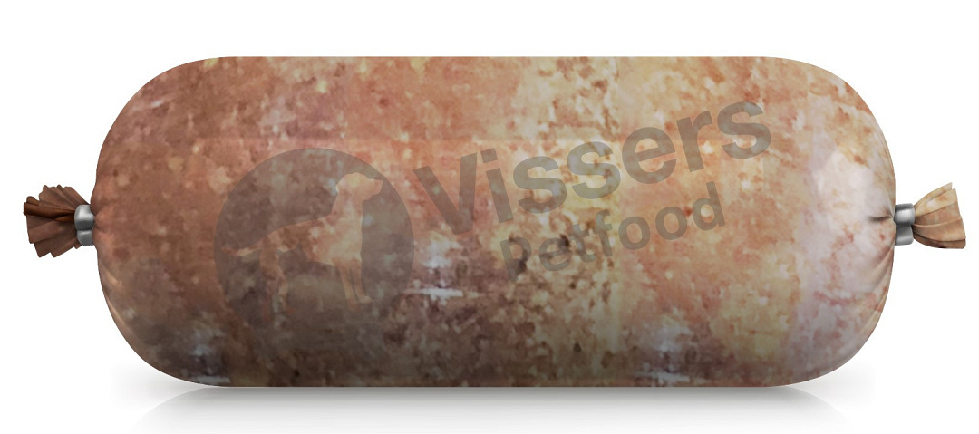 Compleet diepgevroren vers vlees voeding zonder granen voor honden of katten. Ter afwisseling maar ook zeer geschikt als eliminatiedieet doordat er maar een eiwitbron aanwezig is.