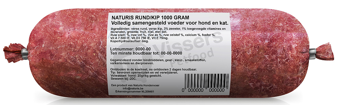 Naturis heeft een zeer uitgebreid gamma aan Vers Vlees voeding zodat er zeker voor iedere hond of kat iets te vinden is. Het vlees wordt verpakt in doorzichtige worstenvellen. Dit is niet alleen beter voor het milieu maar zo kun je ook zien wat je koopt! Doordat er enkel natuurlijke producten gebruikt worden en totaal geen kleurstoffen of dergelijke toegevoegd worden, kunnen er soms kleurverschillen ontstaan. Dit komt niet doordat de samenstelling aangepast is maar door het feit dat niet ieder dier altijd even vet is.