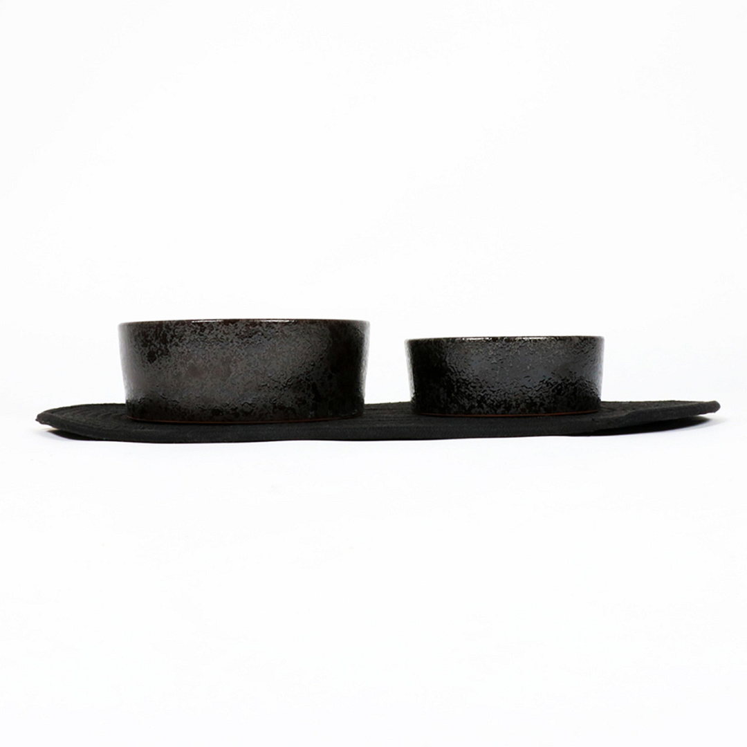 Ambachtelijk gemaakte keramieken voer- en drinkbak.