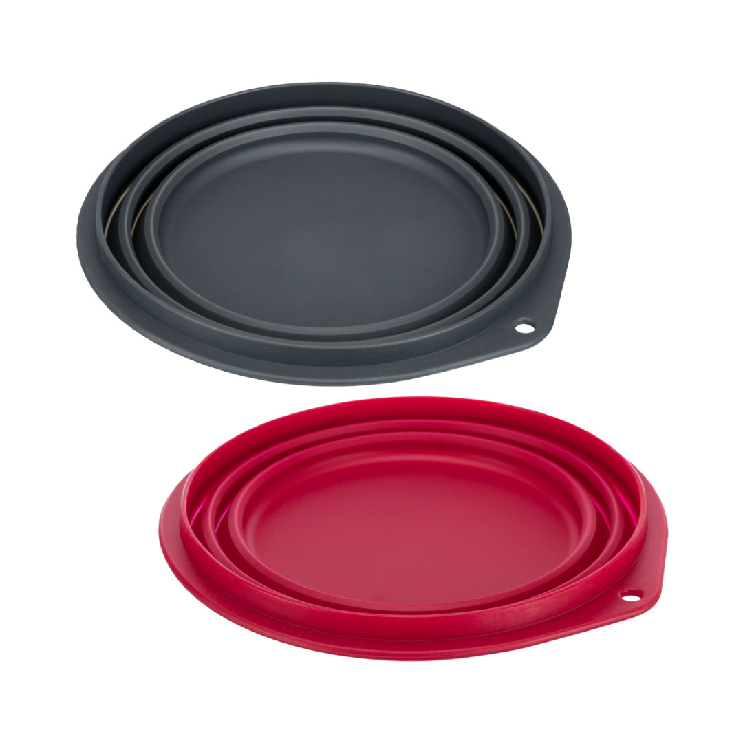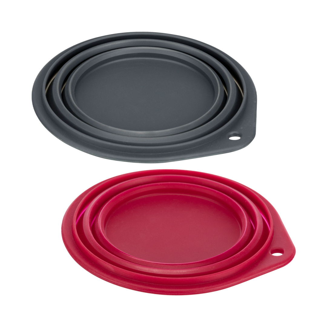 Deze reis voer- en drinkbak van Trixie neemt heel weinig ruimte in als je onderweg bent. De bak is gemaakt van TPE en is plat opvouwbaar.