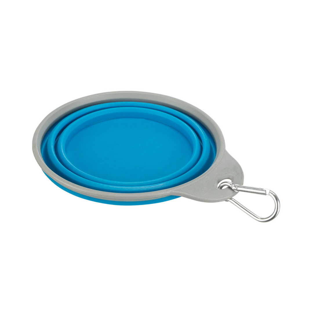 Handige siliconen voerbak voor onderweg. Opvouwbaar, maar zeer vormvast door stevige kunststof rand. Met karabijnhaak om bijv. aan de broekriem vast te maken.Gemaakt van thermoplastisch rubber (TPR).