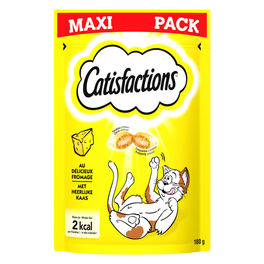 Catisfactions kaas is een heerlijk krokante kattensnack met smakelijk zachte vulling. Door de waanzinnige smaaksensatie zijn Catisfactions onweerstaanbaar voor iedere kat. De snack kan op ieder moment van de dag gegeven worden.
