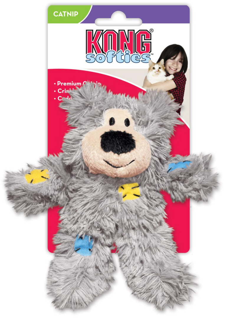 De Kong Softies patchwork bear combineert zachte, pluchen stof met een royale hoeveelheid Kong Premium Noord-Amerikaans kattenkruid om het speelinstinct van jouw kat te activeren. Het knispergeluid en het kattenkruid maken het een geweldig speeltje voor uren speelplezier.