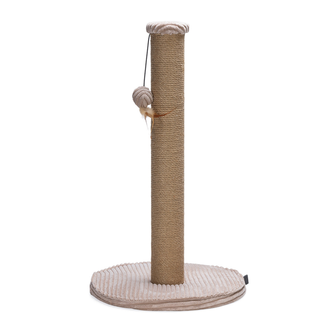 Deze Designed by Lotte krabpaal Ribbed zal niet alleen nuttig zijn voor de kat, maar ook prachtig staan bij jou thuis. De bodemplaat van deze kattenkrabpaal is namelijk voorzien van een mooie, luxe ribbed stof. De krabpaal beschikt daarnaast over een stam die omwikkeld is met jute touw, waar jouw kat naar hartenlust verticaal aan kan krabben. Bovendien zorg je er door het aanbieden van deze krabpaal voor dat jouw meubels niet als kraboppervlak worden gebruikt. Wat de krabpaal nog leuker maakt is de toevoeging van het kattenspeeltje in de vorm van een balletje met veer. Kortom, met deze Designed by Lotte krabpaal Ribbed maak je zowel jezelf als jouw kat blij.