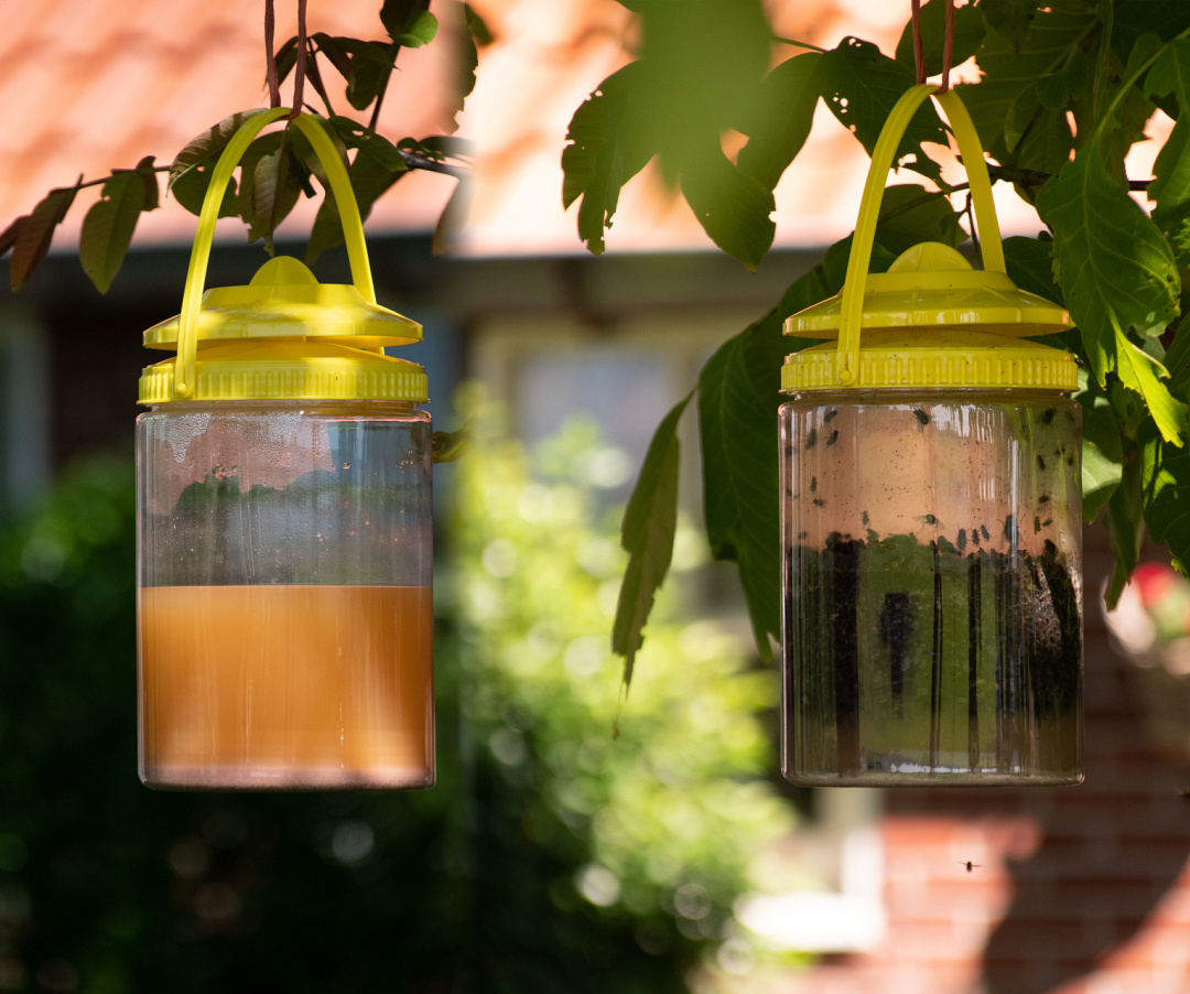 met het lokmiddel FlyNip voor buitenshuis gebruik.