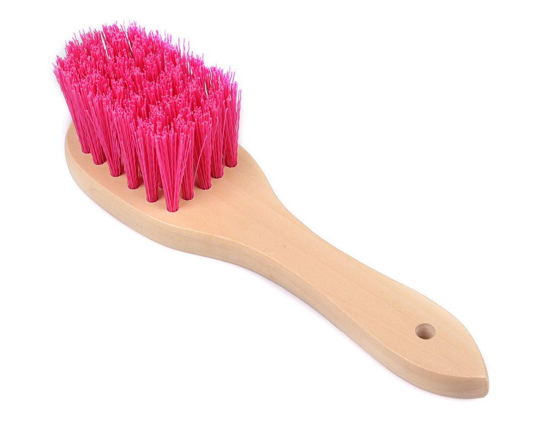 Vrolijke hoevenborstel met stevige haren. Snel en efficiënt paardenhoeven reinigen, ook bij hardnekkig vuil. Voorzien van een houten handvat om de borstel goed vast te kunnen houden.