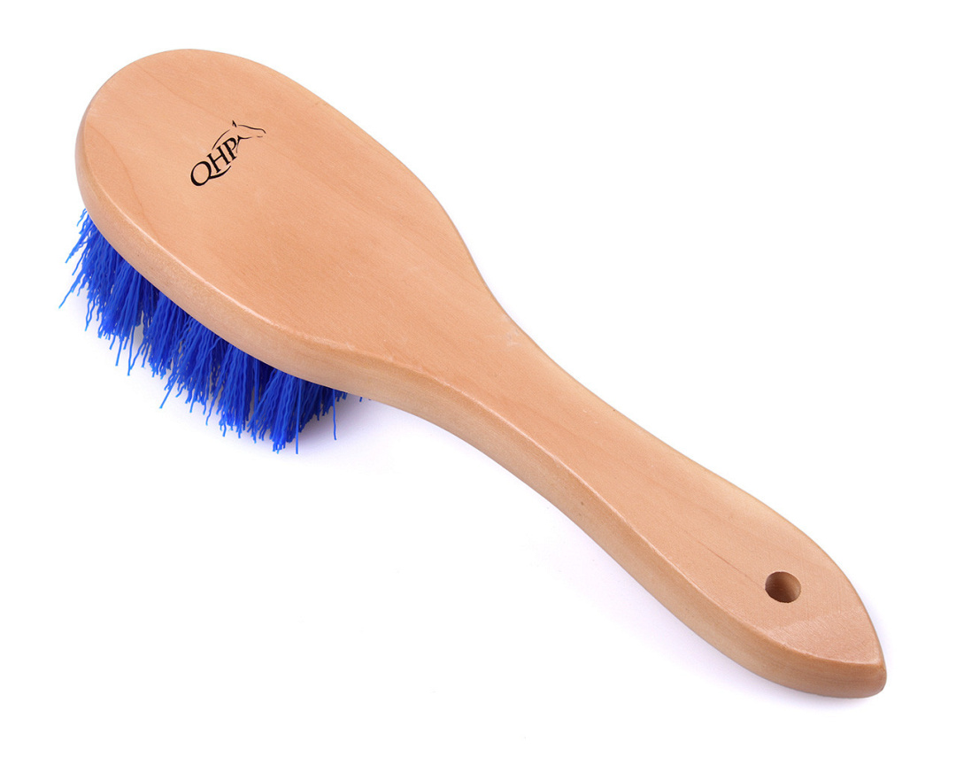 De QHP Hoefborstel is een vrolijke hoevenborstel met stevige haren. Met deze hoevenborstel kan je de hoeven van je paard snel en efficiënt reinigen, ook bij hardnekkig vuil. Voorzien van een houten handvat om de borstel goed vast te kunnen houden.