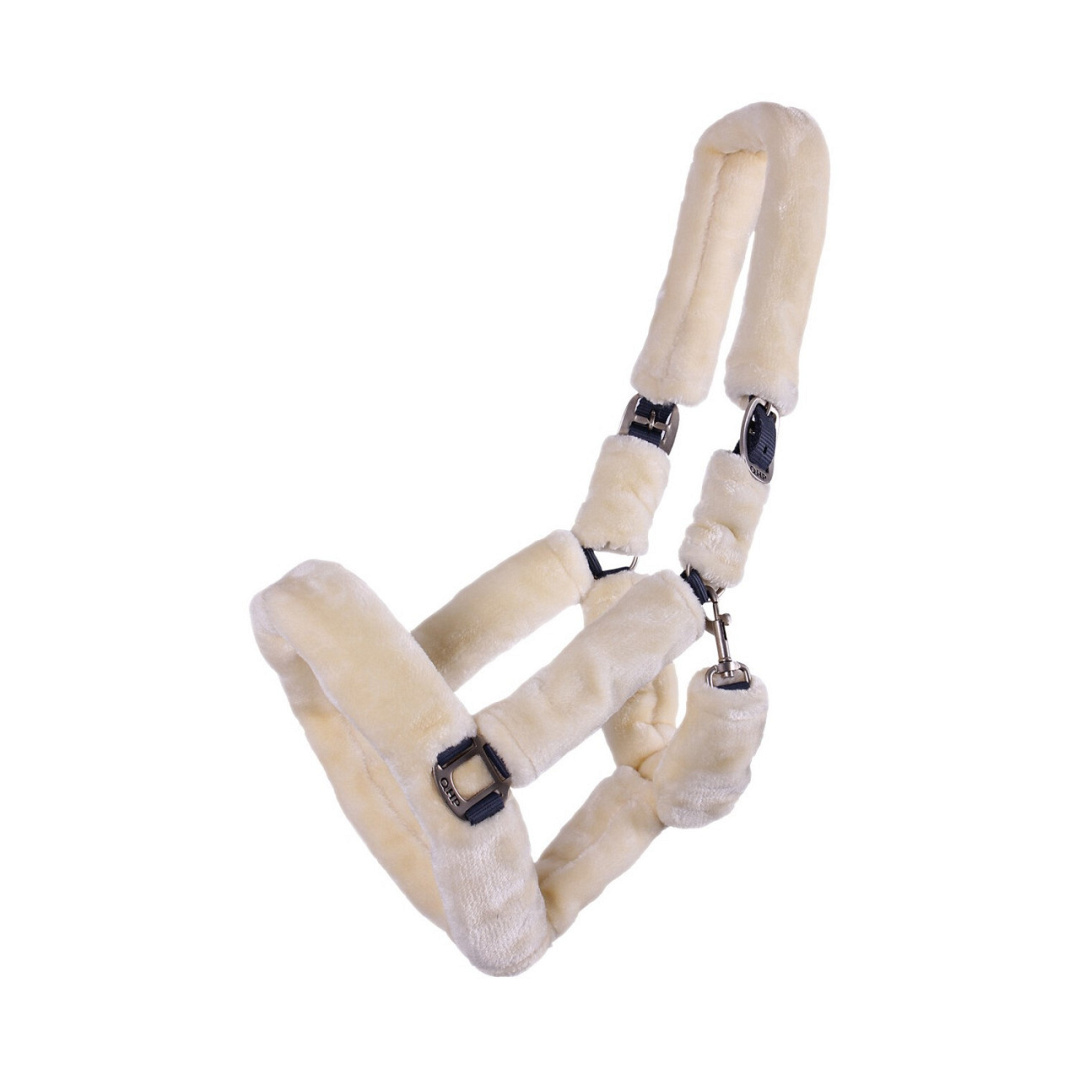 Halster dat volledig is bedekt met imitatiewol en hierdoor zeer geschikt is voor paarden met een gevoelige huid.