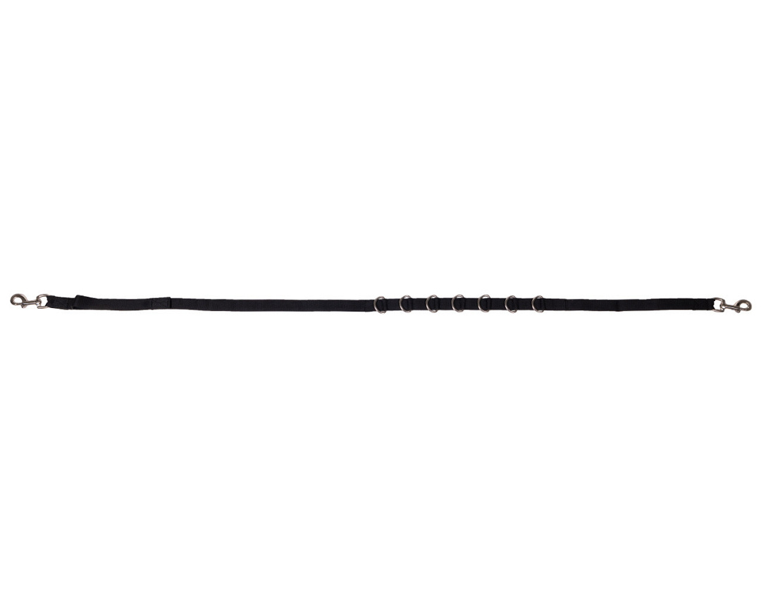 De bijzetteugel is voorzien van 6 D-ringen om de teugel snel in lengte te verstellen en is daardoor zeer makkelijk in gebruik. Door de elastische inzet is deze comfortabel voor het paard.